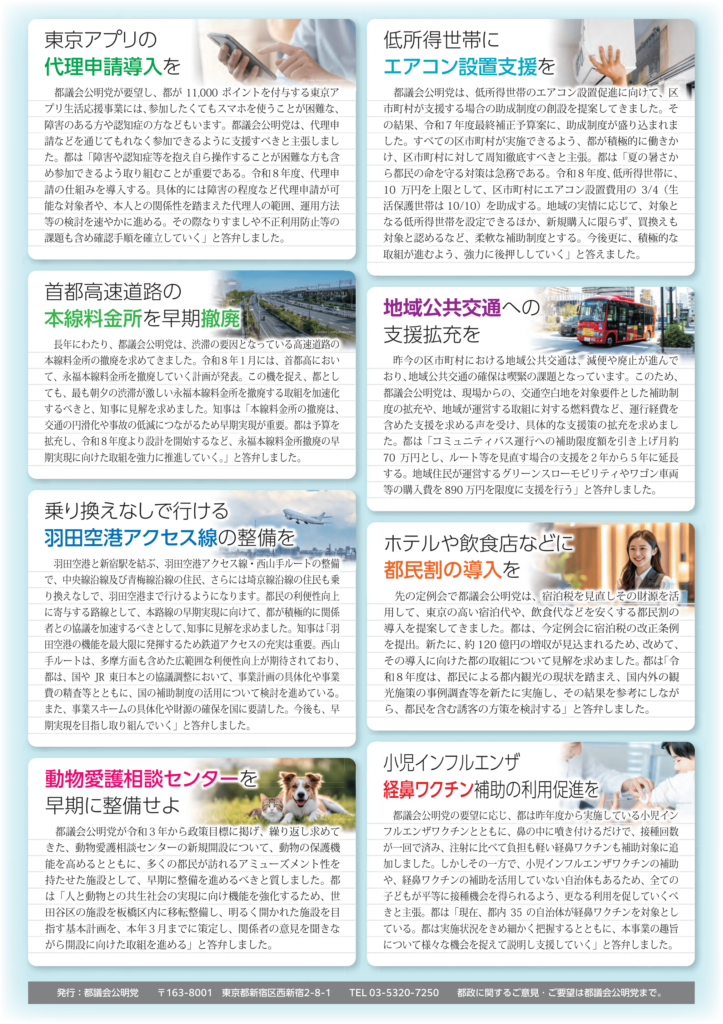 都議会公明党ニュース(2026春季号) 2026.03.06 以下のリンクをクリックすると、定例会のPDFがダウンロードできます。都議会公明党ニュース 2026 春季号 この記事に関するお問合せは 都議会公明党 TEL:03-5320-7250 まで